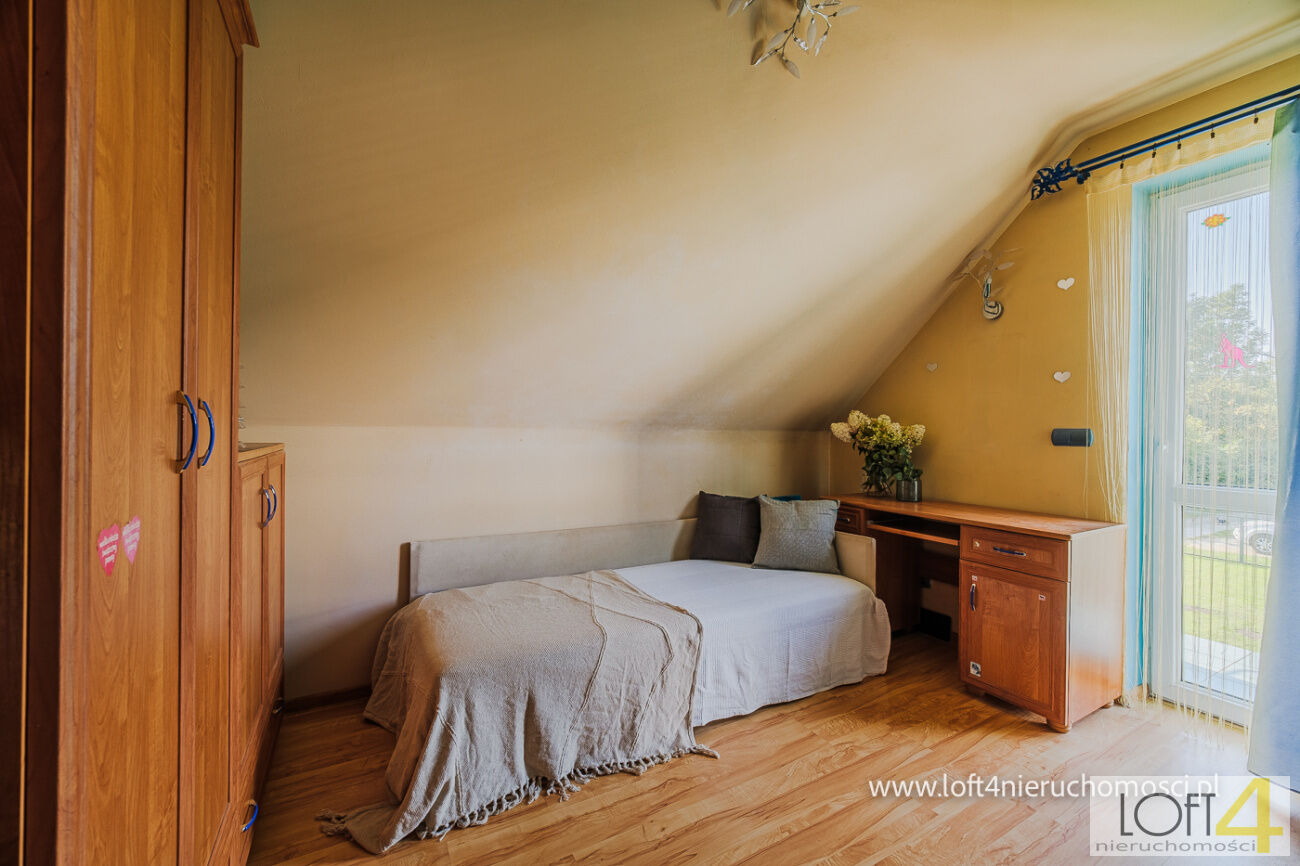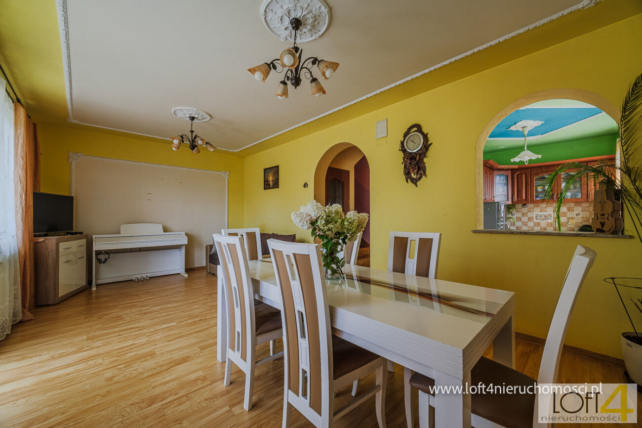 Dom położony jest na działce o powierzchni dokładnie dziewięć arów, wielkość idealna dla każdego kto potrzebuje przestrzeni ale jednocześnie nie chce marnować mnóstwa czasu na koszenie trawy. Powierzchnia użytkowa domu wynosząca około sto metrów kwadratowych w połączeniu z dobrym ociepleniem (styropian 10 cm) powoduje, że miejsca Wam nie zabraknie a koszty ogrzewania nie będą przyprawiały o comiesięczny ból głowy. Dwa poziomy pozwolą oddzielić strefą dzienną od nocnej. Na dolnym znajduje się duży salon z wyjściem na taras i ogródek. Ustawna, jasna kuchnia, łazienka z wanną dla relaksujących kąpieli a także kotłownia, hol i wiatrołap. Górny poziom to cztery pokoje (dwa z nich z wyjściem na balkon) o różnych wielkościach, idealnie nadające się na sypialnie, pokoje dziecięce i gościnne czy gabinety, zaaranżujecie je w zależności od swoich potrzeb. Łazienka z kabiną prysznicową, idealną dla szybkiego odświerzenia się przed wypoczynkiem, uzupełnia strefę nocną.